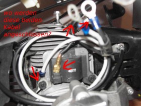 Bild zwei ist Masse, einfach am Rahmen aber fern von der Zündspule an schrauben
