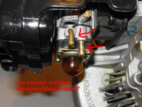 Die Benzinzuführ an Bild 1 ist die linke, die andere für den Rücklauf