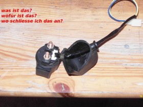 Die kleinen Kabel die da raus kommen, gehen einmal an Masse, das andere geht zum Starterknopf.