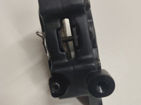 Der Sattel wurde vom Hersteller für Pocketbike-Felgen angepasst (innerer Leitungsanschluss abgefräst und mit Madenschraube verschlossen)
